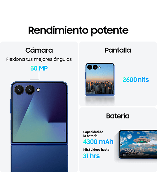 Diseño Plegable: Combina estilo y funcionalidad, permitiendo usar el teléfono sin abrirlo completamente